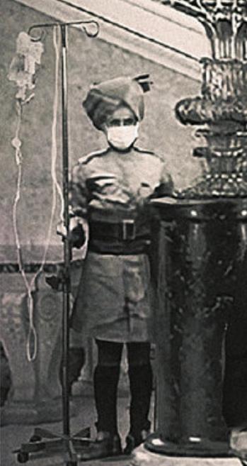 角落里带着白色口罩的印度代表正在输液。