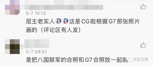 是作者根据5月4日七国集团代表在英国伦敦会晤时拍摄的集体照绘制的。