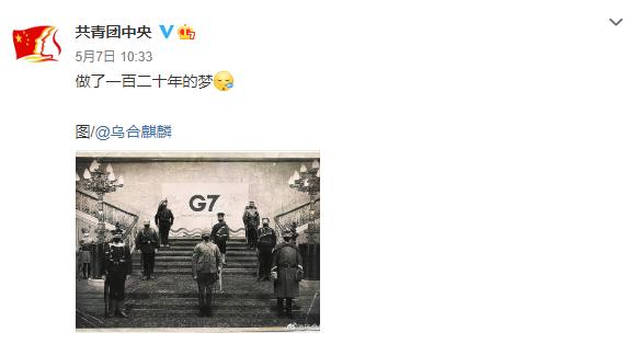 the illustration, looking like a yellowing old photograph, was painted based on a real group photo that the g7 foreign ministers and the high representative of the european union for foreign affairs took in london on may 4 local time.