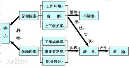 公司的政策、行政管理、监督、工作条件、薪水、地位、安全以及各种人事关系的处理等属于保健因素,处理好这些因素只能降低员工的不满意度,无法提高满意度。工作富有成就感,工作本身带有挑战性,工作的成绩能够得到社会的认可,以及职务上的责任感和职业上能够得到发展和成长等是激励因素,这些因素得到满足,会使员工满意度提升。